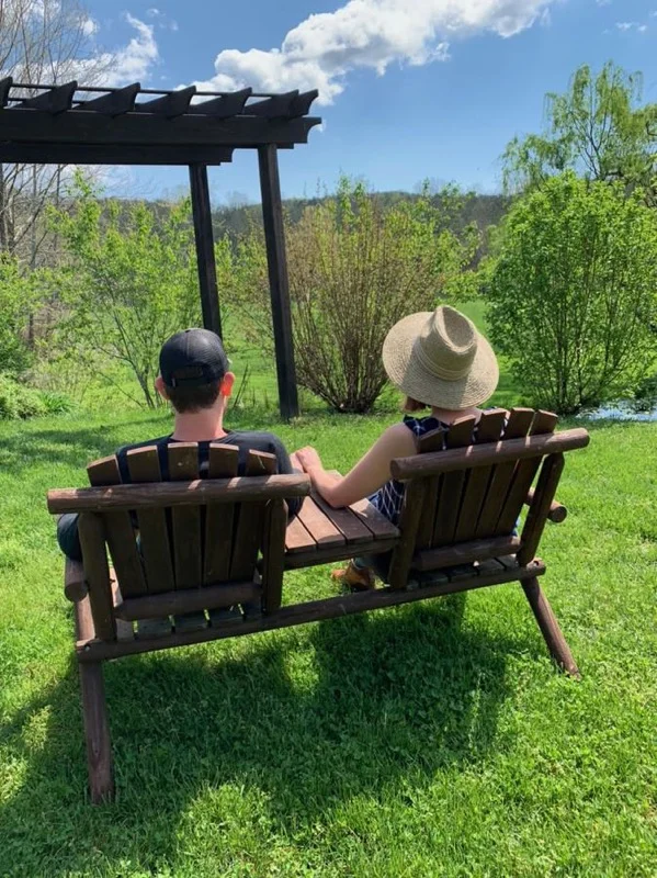 Our cabin had a fireplace and kitchenette, and a lovely porch with a porch swing overlooking the fields in the valley. We also brought our picnic basket to take out and create a little moment out in the beauty!